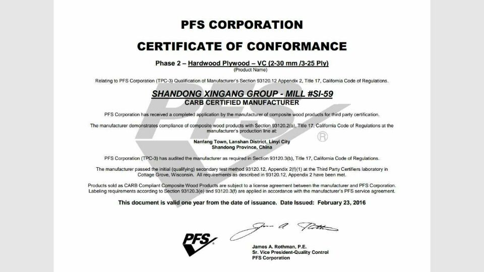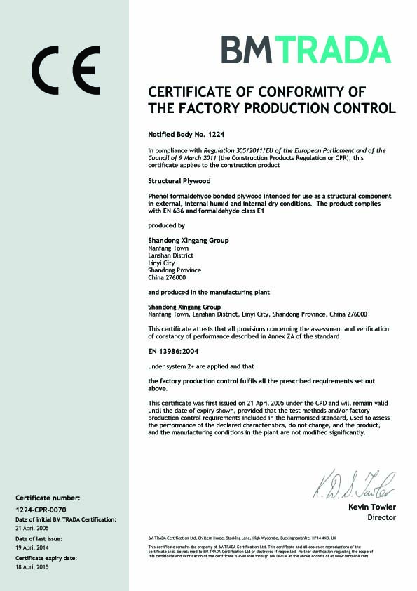 Xingang Group keskendub kõrgele kvaliteedile, ehitame tugeva hapu ja QC meeskonna, et kontrollida kvaliteeti kõigi protsesside kaudu. Xingangi tooted on valmistatud vastavalt FSC/CE/CARB/BFU/ISO/AS/NZS 2269.